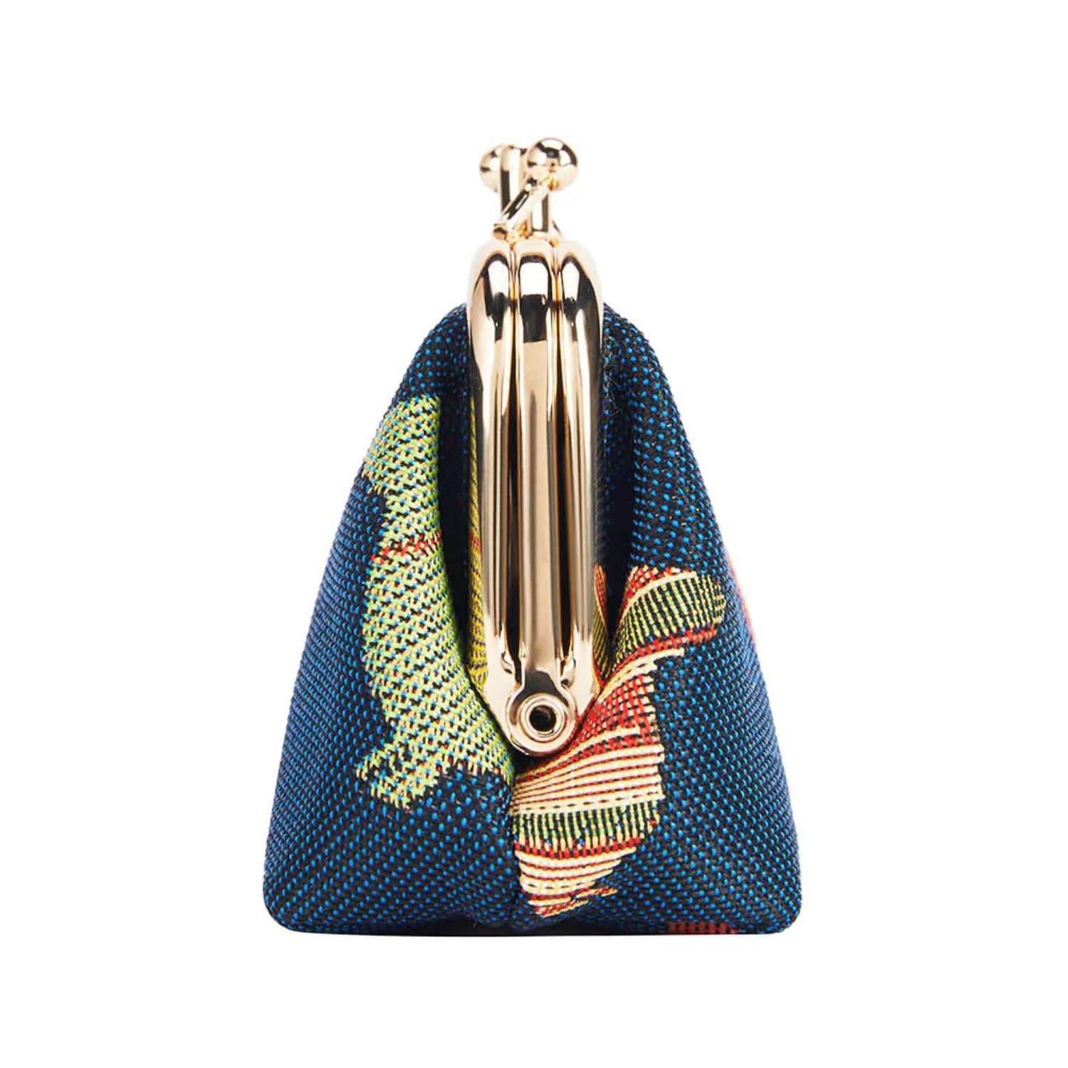 Charming and practical, the Dachshund Frame Purse is a delightful way to keep your coins and small essentials neatly tucked away. Crafted from Signare’s signature tapestry woven fabric, it features a classic gold or silver-tone frame with a secure double clasp closure. Inside, you’ll find two handy compartments, fully lined with patterned nylon for a touch of elegance. Compact yet roomy enough for the bits and bobs you need on the go – it’s a perfect blend of style and function. Dimensions: W 12 x H 8 x D 4.5 cm | Weight: 0.15 kg.